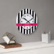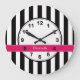Black White Stripe Raspberry Ribbon Name Monogram Large Clock