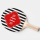 Black White Stripe Red Quatrefoil 3 Monogram Ping Pong Paddle