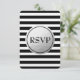 Black & White Stripe Silver Foil Wedding RSVP Card