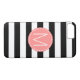 Black & White Stripe with Coral Monogram Case-Mate iPhone Case