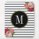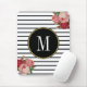 Black White Striped Antique Boho Floral Monogram Mouse Pad