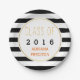 Black white stripes Class of 2016 trendy graduation paper plate. A black and white striped pattern, the word “Class of” in gold in a thin font, the number 2016 in black and your name in coral are the elements of this graduation design.