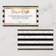 Here is a sophisticated option for your baby shower diaper raffle planning. This design has been embellished with wide black and white stripes, faux gold confetti, and a faux gold foil ombre metallic header text. Behind a white badge that's outlined in two delicate faux-gold borders, I've covered the background in a bold striped pattern. You can change the plack to any colour you like, simply by changing the background colour, using Zazzle's customising tools. On the front, a bold header reads "Diaper Raffle" in an elegant script font, which I've added as a graphic overlay. The text has been embellished in the gold foil effect. Below that I've added an editable message, "Come bearing diapers in packs of any size, and your name will be entered for a chance to win a prize!" then a line for participant names to be written on. On the back I've added more stripes and the faux gold confetti graphic. Please don't hesitate to reach out if you need assistance. // 89 // Designed by Melody Watson for Paper Muserie.