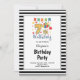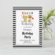 Black/White Stripes Framed 7th Birthday Party Invitation