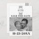 This Save the Date postcard showcases a stunning design with black and white stripes and a monogram. The vertical stripes create a visually appealing backdrop, while a round frame adorned with your initials and two adorable hearts adds a touch of elegance. The postcard also includes a beautiful photo of the couple, capturing their love and excitement for their upcoming wedding. The wedding date is prominently displayed in bold typography, ensuring that guests won't forget the important day. On the back of the postcard, the horizontal stripes continue, providing a cohesive and stylish look.