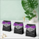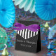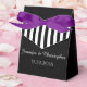 What a wonderful, personalised Party Favour Box for a Wedding, Anniversary, or other special occasion. This Favour Box is decorated with an elegant pattern of black and white stripes on a black background. On the front, Names and Event Date in white. A purple ribbon completes the festive look. A modern, elegant, and chic Wedding Favour Box. All Rights Reserved © 2015 Alan & Marcia Socolik.