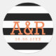 Black & White Stripes | Orange Monogram & Date Classic Round Sticker