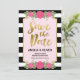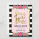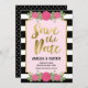 This chic Save the Card Invite features a faux gold border, black and white stripes and some pink roses. This invite also includes a patterned back side.