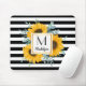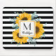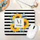 This personalised striped sunflower mouse pad features a modern watercolor floral design with sunflowers, foliage and monogram. Personalise it with a name and initial.