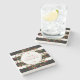 The coasters are gorgeous, a quality feel and heavy weight. They look like a precious archeological find. A rustic stone juxtaposed with a modern floral black and white print. I like the way the print goes slightly imperfect on the cut stone edges giving them a kind-of natural beauty.
