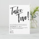 Charming postponed wedding save the new date card in white with black text. Take Two! is written in a brush script across the top of the card. Write your new wedding date and additional information beneath in a modern font.