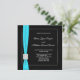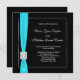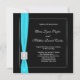 Black and white with teal blue diamond trim bow square wedding invitation.