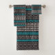 Black White Teal Dots Spots Zigzags Pattern Bath Towel Set