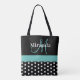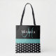 Black White Teal Green Monogram Script Polka Dots Tote Bag