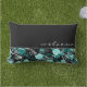 Black & White Teal Rose Pattern | Welcome | Script Lumbar Cushion