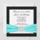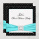 Black and white polka dot with teal blue diamond trim ribbon sweet sixteen birthday party invitation.