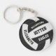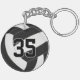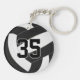 This team colours volleyball themed keychain for girls or boys features a realistic looking black and white volleyball upon which you can customise the player's name, jersey number and court position, plus school or club name and mascot name in a varsity letter style font - by katz_d_zynes