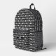 Backpack with a black and white text pattern with the word "Love". Personalised with your name. Great for the gym or school. Space and protection for your laptop