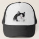 A adorable hat with a cute black and white kitten thoughtful. Other products with this design can be found in our shop.
