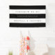Welcome guests to your rehearsal dinner with this eyecatching black and white striped banner. Personalise with three lines of custom text; shown with "tomorrow we do! Congratulations [name] and [name]."