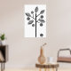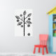 Black white tree on white background, featuring an elegant tree with dotted and lined leaves and fruit in B&W minimal style.