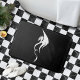 Side profile of a white tribal ink dragon in a backdrop of black.