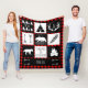 This amazingly stylish and fun black and white tribal woodland adventure blanket is sure to please. It features bear, wolf, antlers, trees, arrows, and a tribal patterned feather over black and white squares. The bottom centre has a personalised name area with accenting white arrows. There is also a changeable monogram letter inside the white antlers. The background of the blanket is a red plaid which can be changed by customising the background colour. This blanket comes in all sizes even a small baby sized one making it great for a baby shower gift!