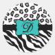 Black White Turquoise Zebra Leopard Skin Monogram Classic Round Sticker