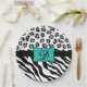Enjoy entertaining with these stylish and sophisticated paper plates. Colourful zebra stripes and leopard or cheetah skins for graphic design is one of the hottest art and design trends, and is extremely popular from fashion to home decor. This sophisticated black and and white with grey or grey zebra and leopard print pattern is available in several colour combinations. A turquoise teal blue emblem creates a personalisation area with your monogram. This is fully customisable. Go wild with these wild skins designs!