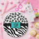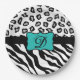 Black White Turquoise Zebra Leopard Skin Monogram Paper Plate