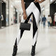 Black White V Slanted Stripe Geometric Colour Bloc Leggings