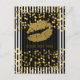 Black & White Vertical Stripes Gold Faux Foil Dots Postcard