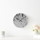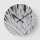 Black & White view of palm tree fronds Round Clock