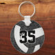 This volleyball keychain with custom team and school mascot name features a floral kaleidoscopic pattern blended with the volleyball's black panels on the front and a simple white volleyball on the back - personalise with her name, team name and jersey number - by katz_d_zynes