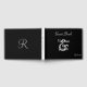 Elegant black white silver Wedding. Personalise with bride and groom's names in white text. Date of Wedding and Monogram on backside in silver text. Spine of book as the wording Our Wedding in black text against a white background. Original designs by TamiraZDesigns.