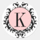 Elegant Parisian Chic Pink Black and White Monogram Stickers with Damask Design. Art and Design by Elke Clarke ©2010.Customise with your monogram initial and wedding colours.