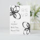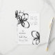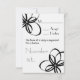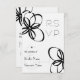 Modern wedding R.S.V.P. cards featuring a black and white (or other background colour of your choice) colour scheme. Black flowers in top left and bottom right corners. Personalise the black text with details of your occasion.