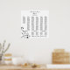A wedding reception seating chart is an elegant way to direct your guests to their tables instead of using table place cards. You can also keep your seating chart as a momento of your wedding and the people who celebrated with you. This wedding seating chart features black swirls and curls on a white background. It is available in several different sizes with an optional frame. We also offer a rectangular version of this wedding reception seating chart that fits many standard frame sizes.