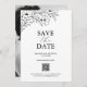 Announce your special day with this elegant save the date with picture, designed in a timeless black and white wedding style. This classy save the dates design features delicate white anemone flowers illustrated in fine line art over a crisp white background, created by Victoria Grigaliunas of Do Tell A Belle. The modern layout includes a customisable QR-code so you can easily share your wedding website or event details. The back showcases your photo, giving the invitation a personal and sophisticated touch. Use the save the date templates to add your wording, then choose printed cards or a digital file for online sharing.