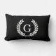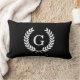 Black White Wheat Laurel Wreath Initial Monogram Lumbar Cushion
