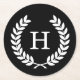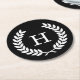 Black White Wheat Laurel Wreath Initial Monogram Round Paper Coaster