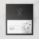 This black and white wildflower floral place card is minimal and classic. The front displays a bouquet of flowers and the back can be customised with your names and wedding date.