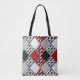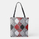 Black white with red retro patchwork tote bag
