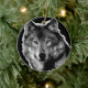 Black & White Wolf Artwork Ceramic Ornament