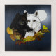 Black White Wolves Moonlight Autumn Leaves Jigsaw Puzzle