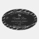 Make a lasting impression with this elegant and luxury product label design featuring a black and white word cloud border with a shimmery silver frame.