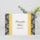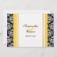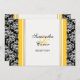 Elegant, classy and stylish flat 5x7" party invitation reception flat cards with a formal large damask pattern, bordered by vertical "yellow and white" stripes and a white inlay trimmed with gold. CUSTOMIZE IT - Suited to all formal and special occasions, change the wording / the size / colour and style of the font; the background colour to any of your choice and move / add or delete templates to make it unique. Use the "customise it" button to access all editing options. IDEAL FOR - Chic anniversary, dinner, housewarming, graduation and prom parties or "white and black" weddings, engagements and anniversaries. CUSTOM REQUESTS - For colour changes, matching products or assistance, contact me on clientrequestrw@gmail.com
