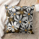 Black, White, Yellow Elegant Daisy Floral Abstract Cushion