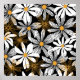 Black, White, Yellow Elegant Daisy Floral Abstract Poster