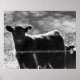 Original black and white photograph of a young cow grazing in a field printed on a 16x20 poster print. I was travelling through the area with my camera and stopped to watch a few calves grazing in a field. He happened to look up at me right as I snapped the photo. A BohippianFinch original photograph.